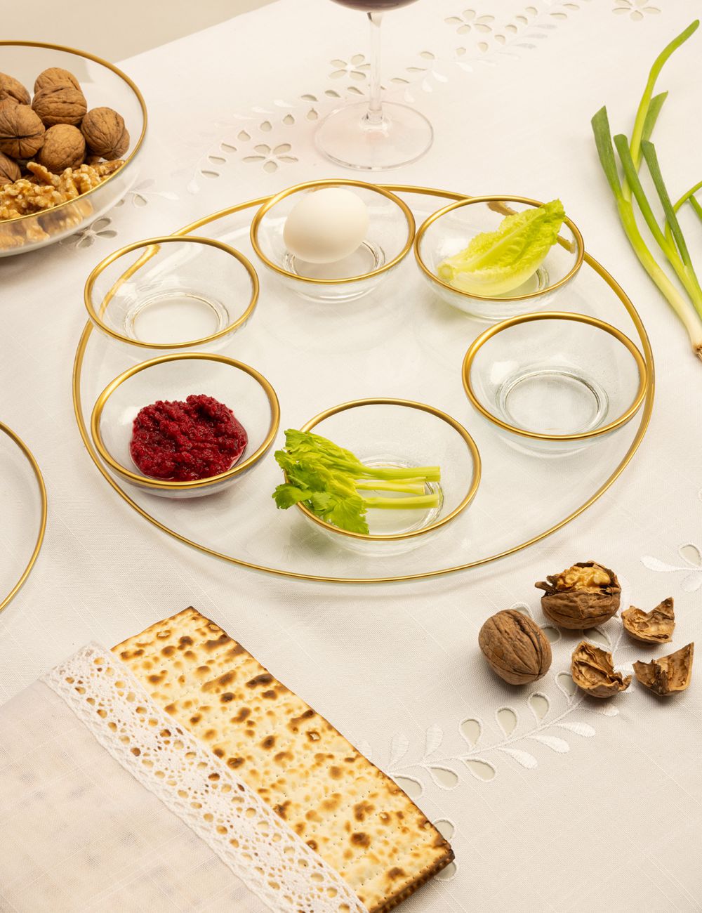 קערת זכוכית עם שוליים מזהב קוטר 21 ס”מ